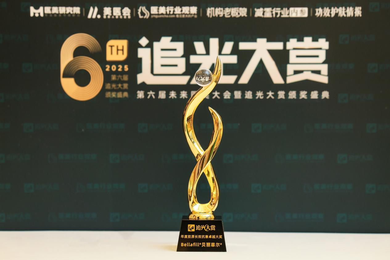 12月3日,由医美行业观察主办以”新世界·精耕增长"为主题的2025第六届未来医美大会暨追光大赏颁奖盛典,于上海隆重举行。Bellafill贝丽菲尔凭借前瞻性的再生理念与卓越的抗衰疗效,在众多产品中脱颖而出,荣获“年度胶原长效抗衰卓越大奖”。